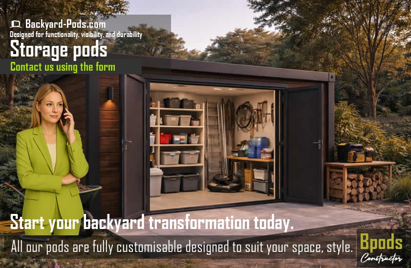 Storage pods deliver secure and practical outdoor storage to reduce clutter inside the home. A simple way to organise tools, equipment, and seasonal items.